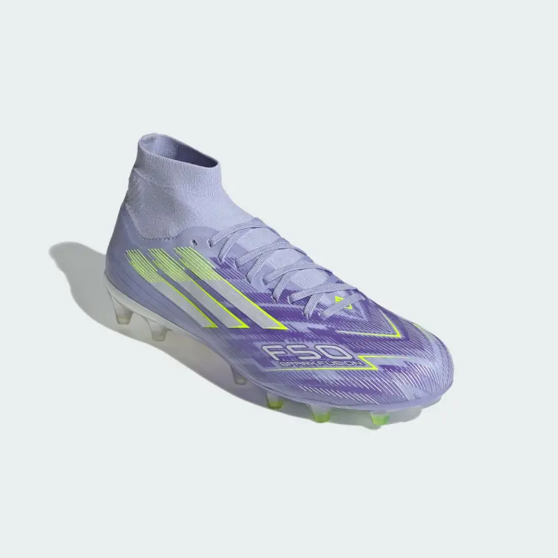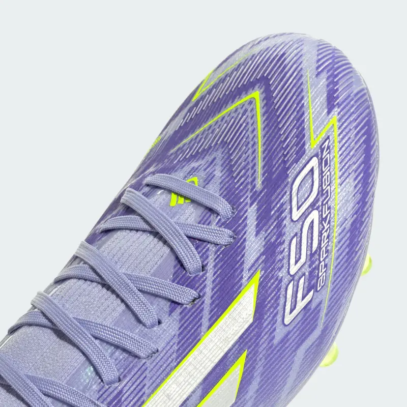 Designed for her. Light up the pitch in supportive F50 Sparkfusion cleats created specifically for female athletes. Keeping you locked in with an adidas PRIMEKNIT collar, the Fibertouch upper on these Pro soccer cleats sits on a Fusionlast for an anatomical fit and a Fusionsole for arch support. A specially created Sprintshell Fusion outsole supports women’s biomechanics for increased agility on multiple surfaces.