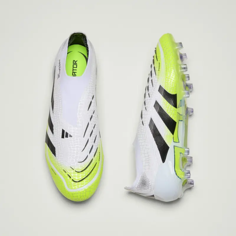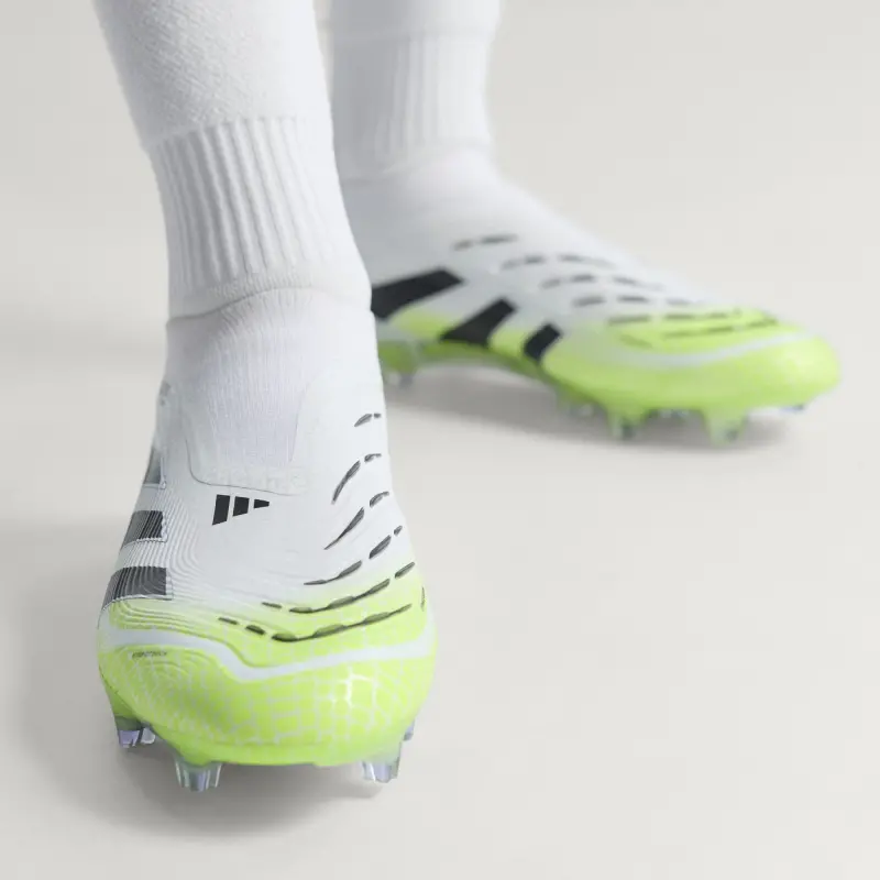 Discover the difference between aiming to score and knowing you will with adidas Predator cleats that are crafted for goals. These Elite cleats have a HybridTouch upper with strategically placed rubber Strikeskin fins and a laceless construction that help provide perfect contact with the soccer. The Controlframe 2.0 firm ground outsole and adidas PRIMEKNIT collar are designed to give you a stable stance when the goal’s at your mercy.