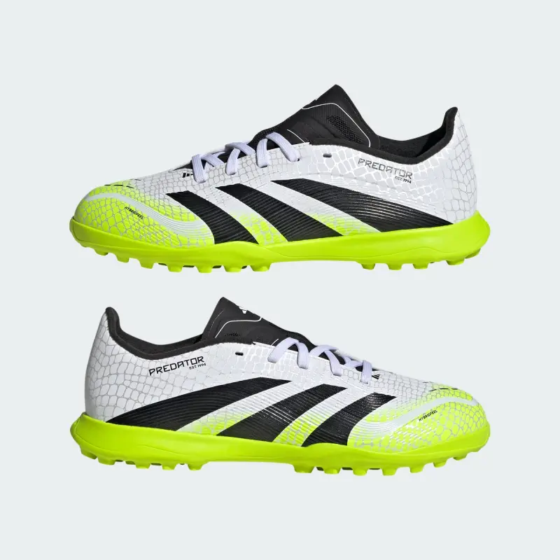 Discover the difference between aiming to score and knowing you will with adidas Predator cleats that are crafted for goals. These juniors’ League cleats have a Hybridfeel upper that incorporates an all-over 3D texture and grippy Strikescale fins to help you manipulate the soccer during strikes. A lug rubber outsole keeps you stable on artificial turf pitches.
