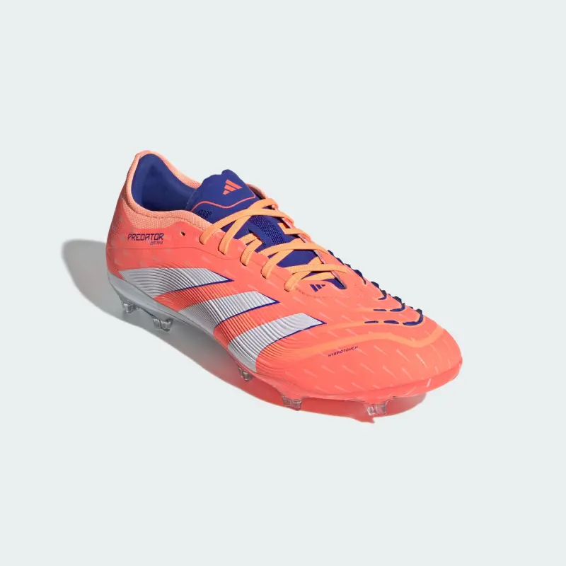 Discover the difference between aiming to score and knowing you will with adidas Predator cleats that are crafted for goals. These Pro soccer cleats have a flexible HybridTouch upper with grippy rubber Strikeskin fins that help control every strike of the ball. Turn them over and you’ll find a full-length Controlplate outsole designed to keep you stable on dry grass.