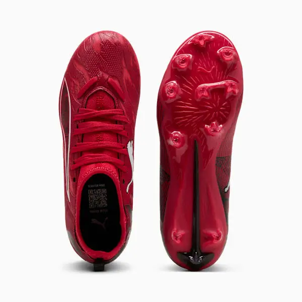 How fast is ULTRA 6? Buckle up. Perfect for rising speedsters, this version of ULTRA features PUMA’s all-new SPEEDSYSTEM outsole and FastTrax stud design for explosive traction. Three rounded studs on the lateral side allow you to switch between firm ground and artificial grass. Nothing extra. Everything ULTRA.