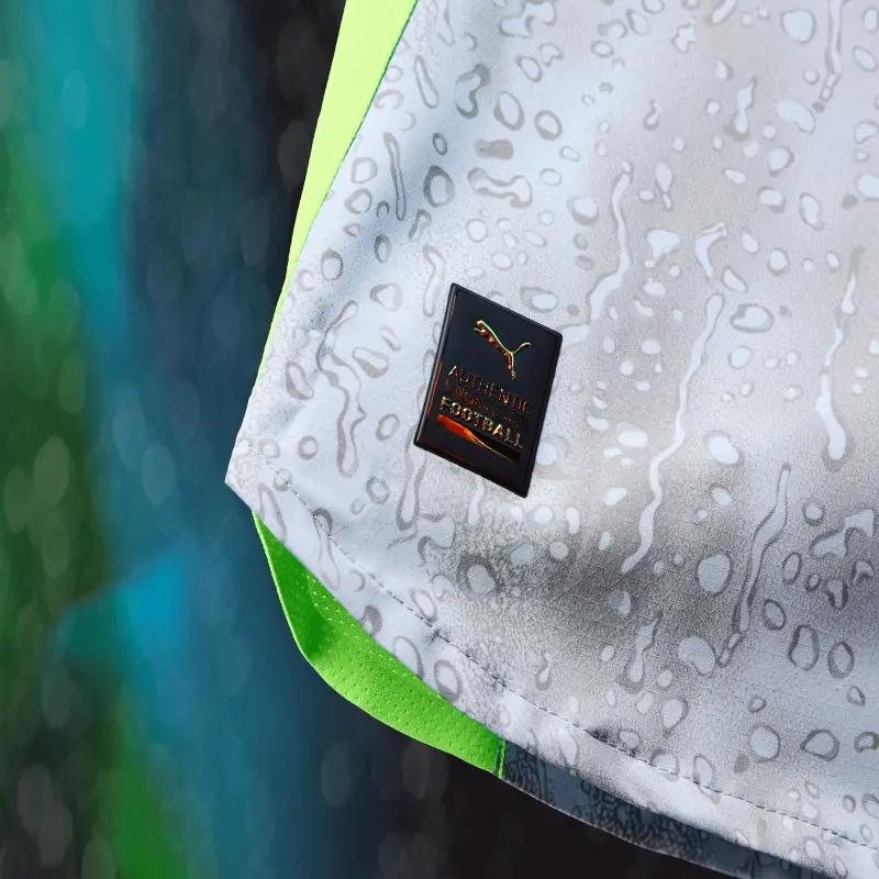 Defy the elements in the Manchester City Authentic Third Long Sleeve Jersey 2025/26. Crafted with cutting-edge ULTRAWEAVE fabric, this jersey is ultra-light to reduce friction and enhance mobility. dryCELL technology keeps you cool and dry, even when the pressure rises. Featuring long sleeves, a regular fit, and mesh panels at the shoulders, sides, and underarms, it’s built for breathability and performance. The club crest and PUMA Cat logos bring the team spirit, while the heat-transferred Authentic Licensed Product label adds a premium touch. Finished with a bold rain design and a “Rain or Shine” print on the inner side of the collar. Man City are a symbol of the people, the culture, and the humour of Manchester. That’s why the 25/26 Third Kit is a tribute to Mancunian weather, designed for those who carry City in their hearts, rain or shine (Though, let’s be honest, mostly rain).
