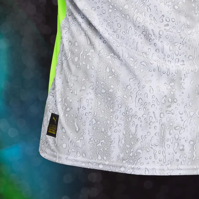 • Rain is part of our identity, but it never dims our shine. Defy the elements and stand out in the MCFC Third Kit.
