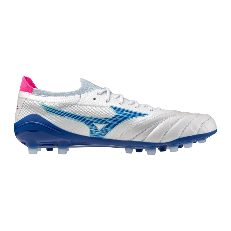 Experience the ultimate lightweight performance with this 4th generation MORELIA NEO model, designed for a flexible barefoot feel. This boot features BareFoot KNIT NEO for a more barefoot feel around the boot opening plus BareFoot MESH NEO soft material at the midfoot. The new eyelet arrangement conforms to the foot while minimizing creasing, and the external counter AG sole provides excellent grip on artificial grass.