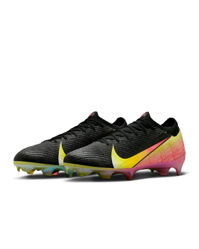 As Vini Jr. flies over the field at blinding speeds, Mercurial lifts him to new heights. The gradient design of his Vapor 16 Elite blends colors from his debut club to the Brazil national team—where he started and where he’s going. With bouncy Air Zoom cushioning, a new traction plate and revolutionary Gripknit, it unlocks his explosive acceleration into the future.